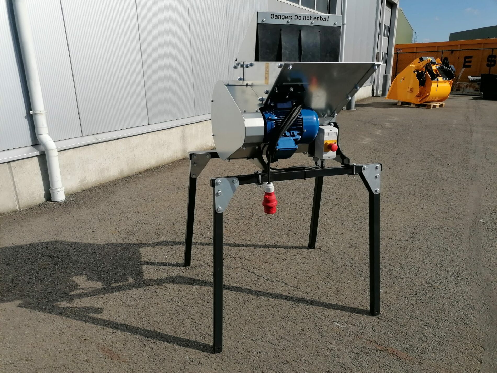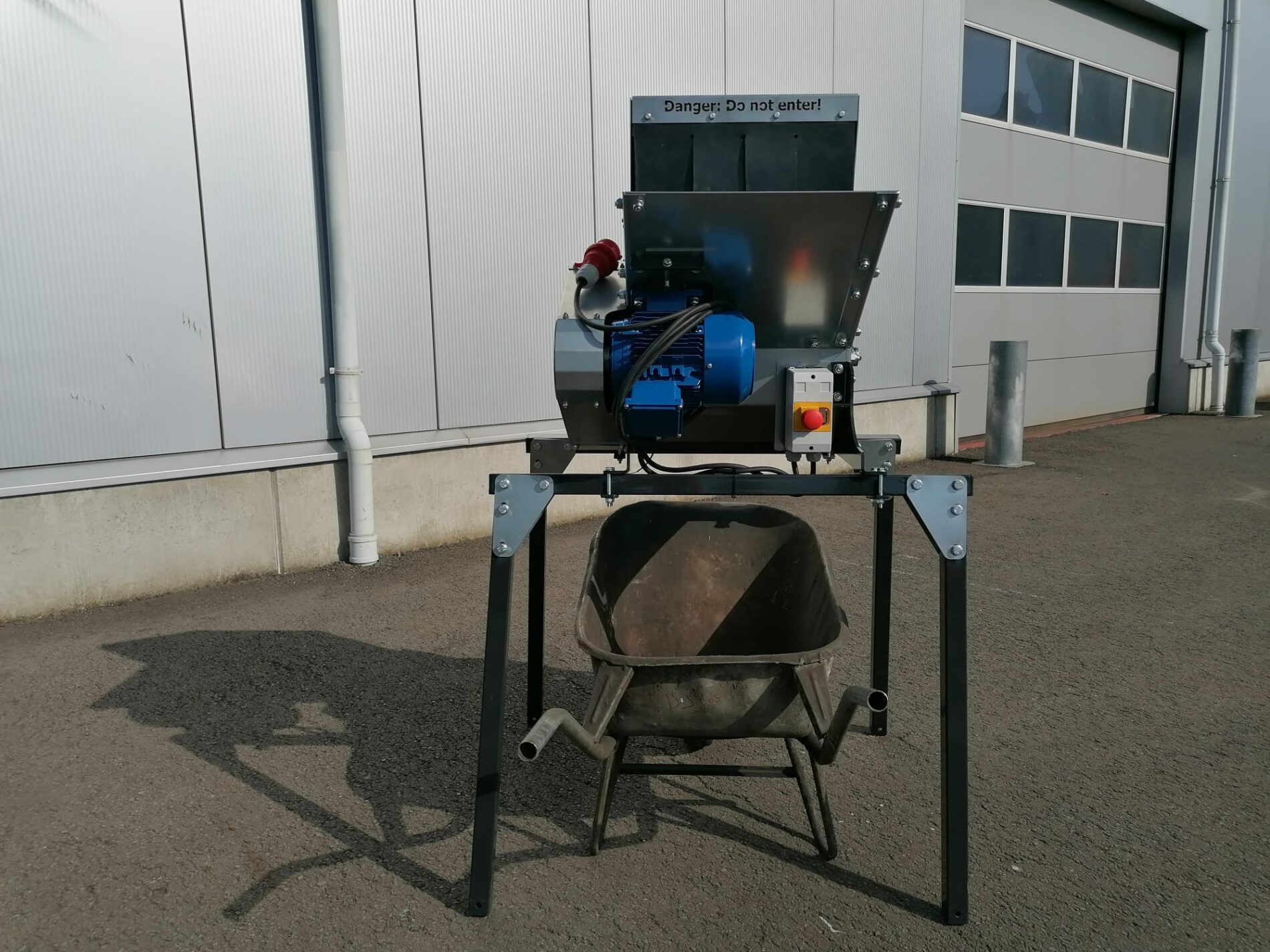 Die stationäre elektrische Rübenmühle BM-ES ist eine preisgünstige, professionelle Lösung zum Schneiden von Rüben und Kartoffeln. Das Schnittgut fällt am Boden der Messerkammer heraus und wird typischerweise in einer Schubkarre oder in einem Schaufelbehälter aufgefangen oder auf den Boden geworfen. Die Mühle wird standardmäßig mit 400 V betrieben, kann aber optional auch mit 230 V betrieben werden.