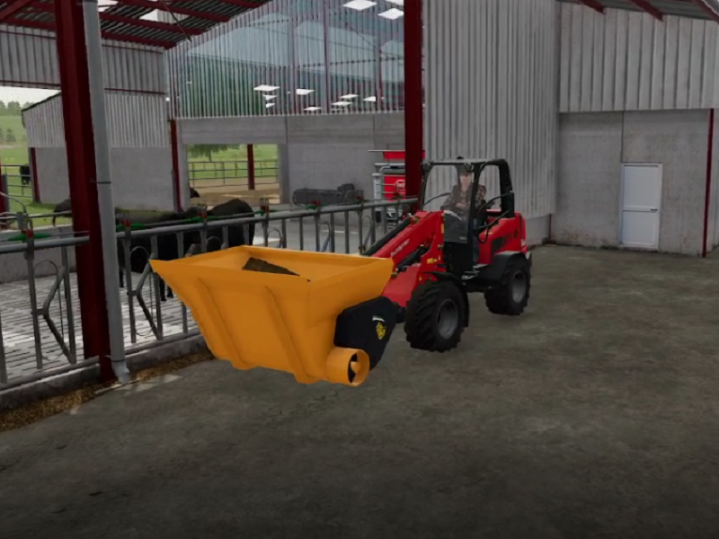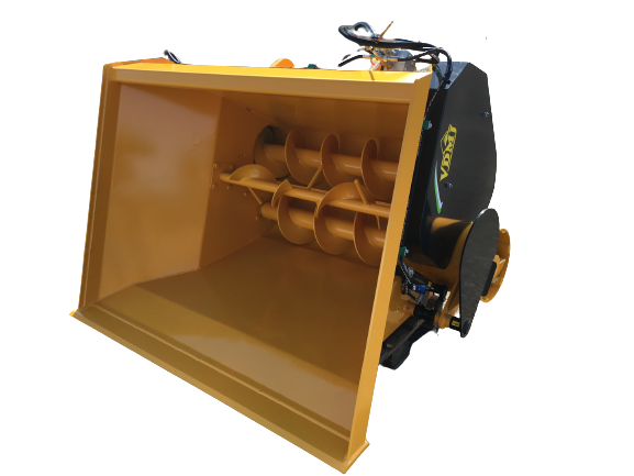 The EV-2V feeder is suitable for left and right feeding of short or dry products such as (silage) maize, pulp, concentrates, beets, potatoes, carrots, etc. Optionally, a beet or potato blade can be provided for cutting root crops. The bucket can be provided with a door at the exit that prevents feed from falling out during transport.